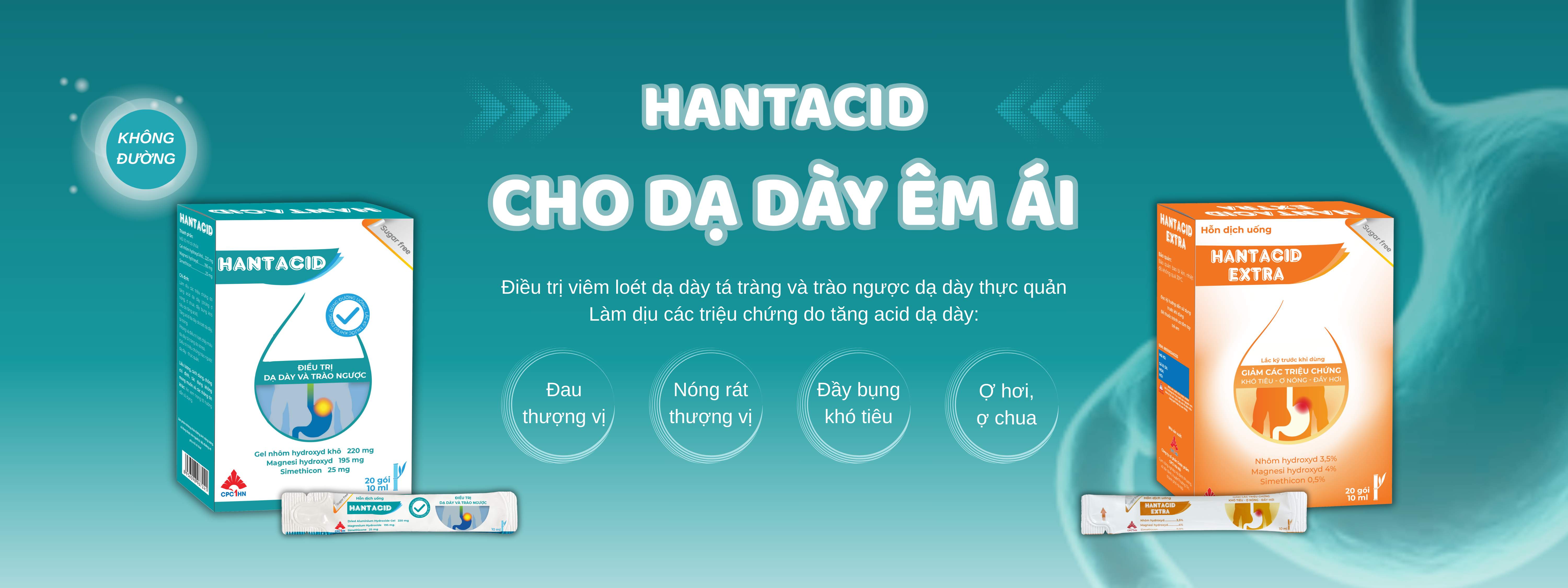 HANTACID có tác dụng kháng acid và ổn định dạ dày, dùng cho các trường hợp: